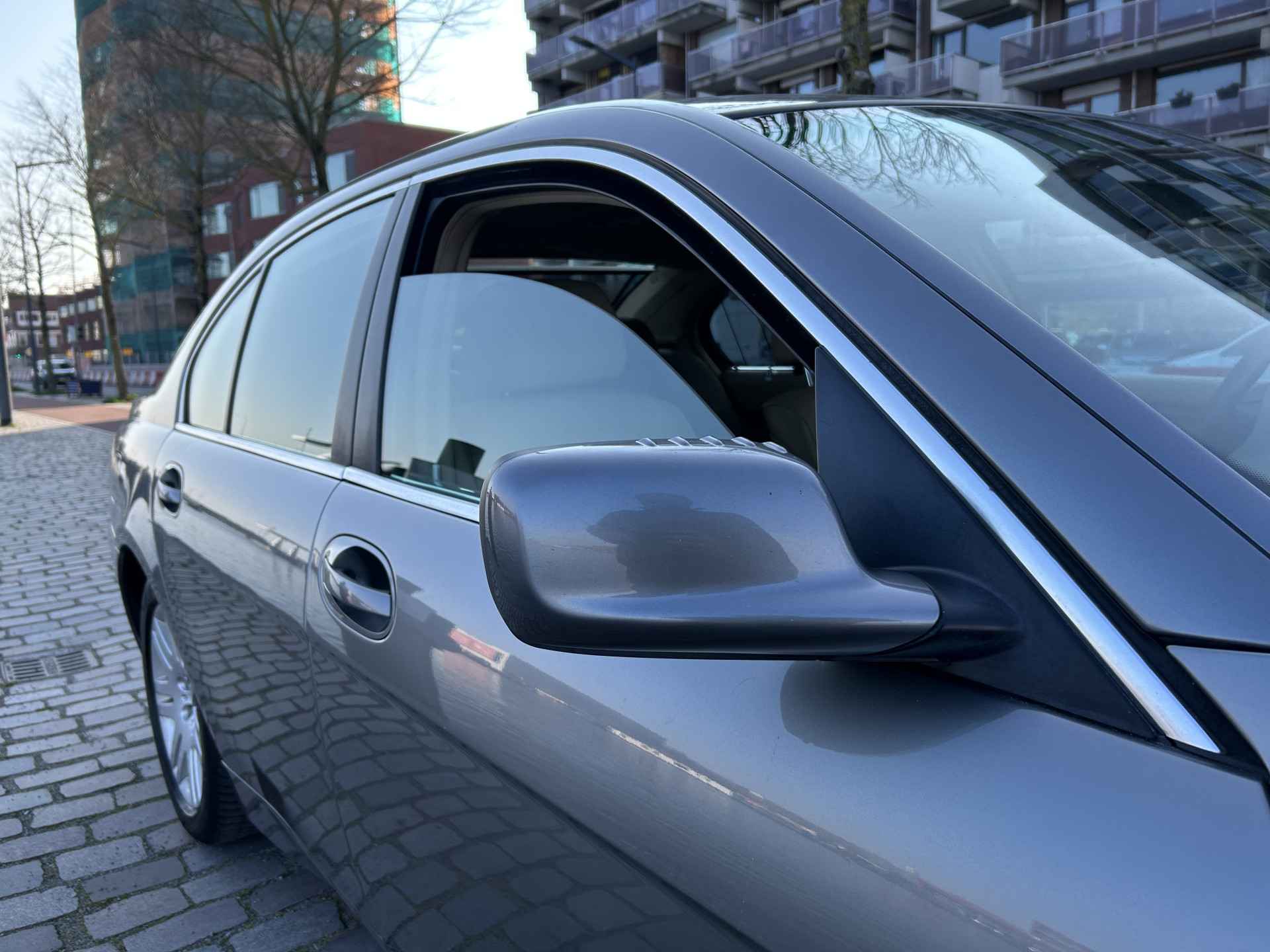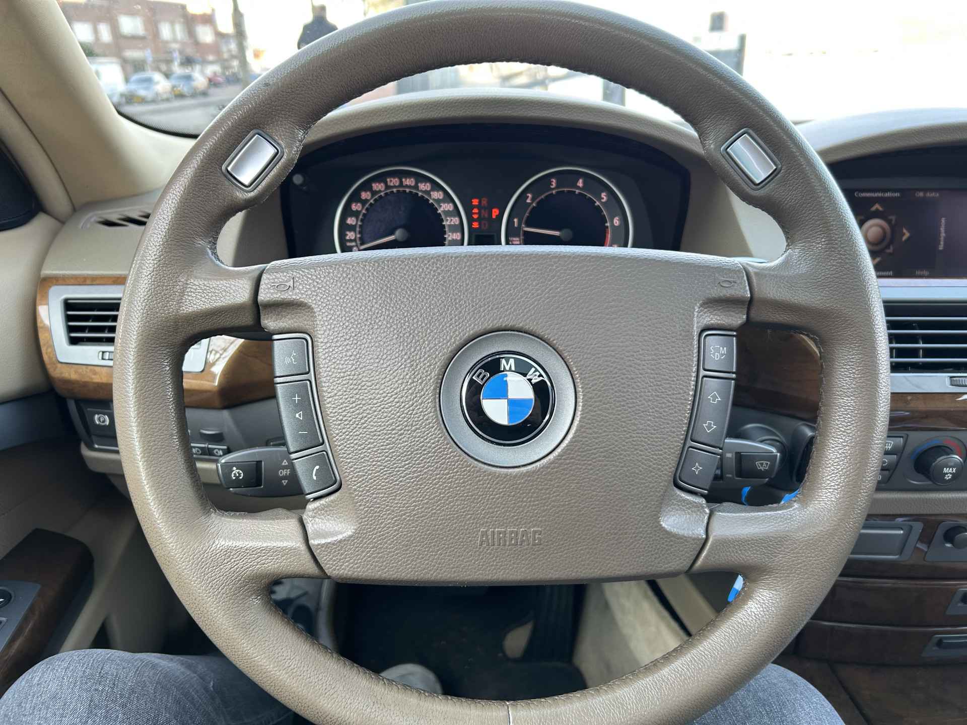 Een representatieve zakenauto, dat is deze BMW 7-serie.Met zijn sterke 8 cilinder 4.5 liter motor. Maar bovendien is hij veilig en comfortabel. De aandrijving wordt verzorgd door een achtcilinder benzinemotor en een automatische transmissie. Niet voor niks geldt een lederen interieur al jaren als een luxe extra. U krijgt het er gewoon bij, net als het elektrisch bediende glazen panorama dak. Neem plaats op de comfortabele stoelen. Dankzij de elektrische bediening en het geheugen is het eenvoudig om hierin de beste zitpositie te vinden. Laat ze achterin ook maar genieten: deze BMW 7-serie is uitgevoerd met een verwarmde achterbank. Met de krachtige xenonverlichting rijdt u ontspannen in het donker. Tot de uitrusting behoren ook elektrische zonnerollo voor de achterruit, 19 inch lichtmetalen velgen, warmtewerend glas, verstelbare lendensteunen en snelheidsafhankelijke stuurbekrachtiging.