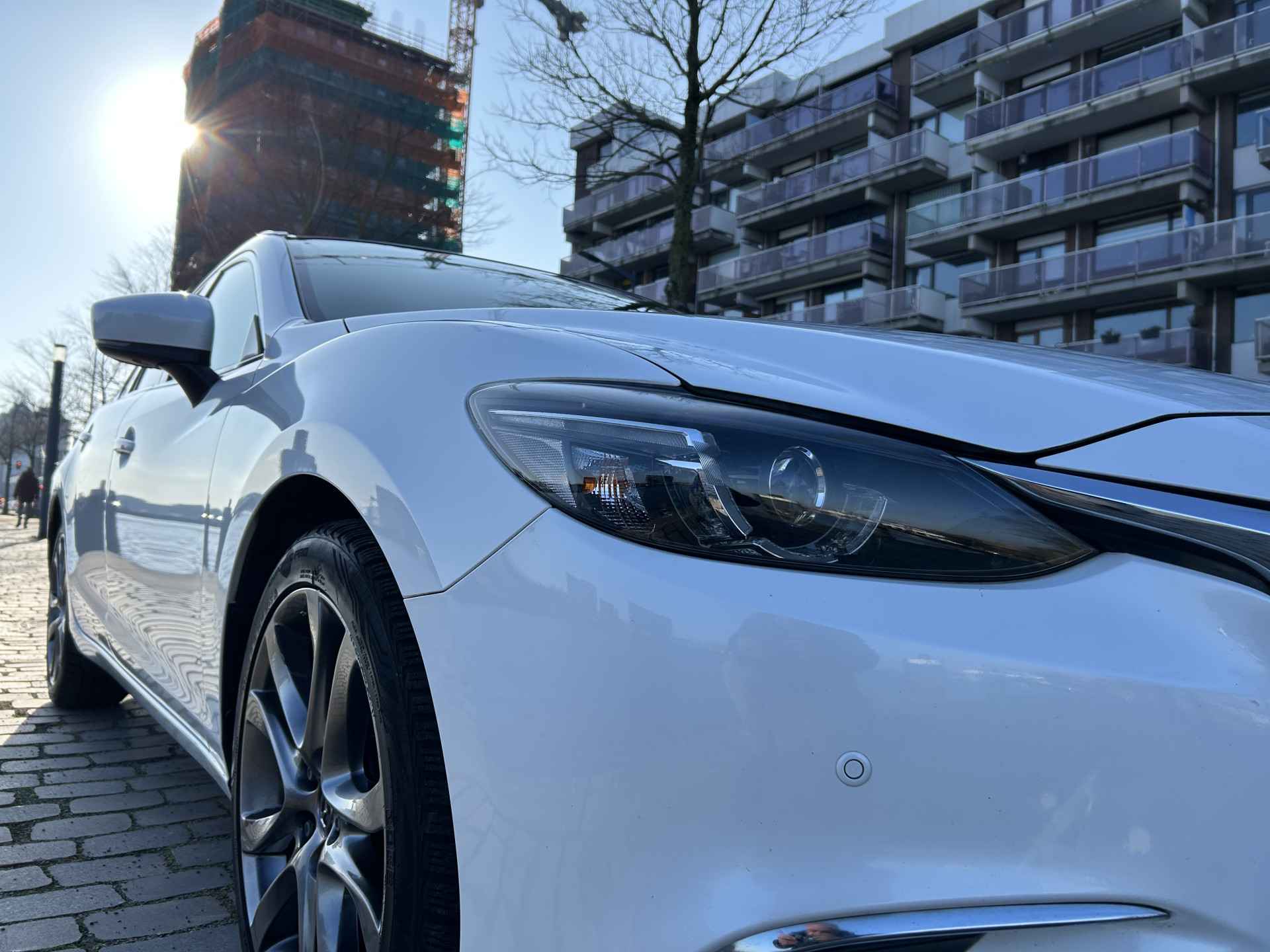Een onopvallend paaltje of een overstekend kind achter de auto brengt risico's met zich mee. Gelukkig laat de achteruitrijcamera feilloos zien of alles veilig is. Rijplezier en luisterplezier gaan hand in hand dankzij het high performance audiosysteem. In een auto als deze kunt u niet zonder automatische airconditioning, zodat de temperatuur altijd goed is. De automatisch inschakelbare verlichting en regensensor zorgen dat onderweg automatisch de verlichting en de ruitenwissers worden ingeschakeld. Daarmee nemen ze u veel werk uit handen. De cruise control levert een mooie, gelijkmatige koers. Dat rijdt prettig. Met dashboard met spraakbediening, full map navigatiesysteem, DAB ontvangst, keyless entry, buitentemperatuurmeter en automatisch dimmende binnenspiegel is deze Mazda helemaal compleet.