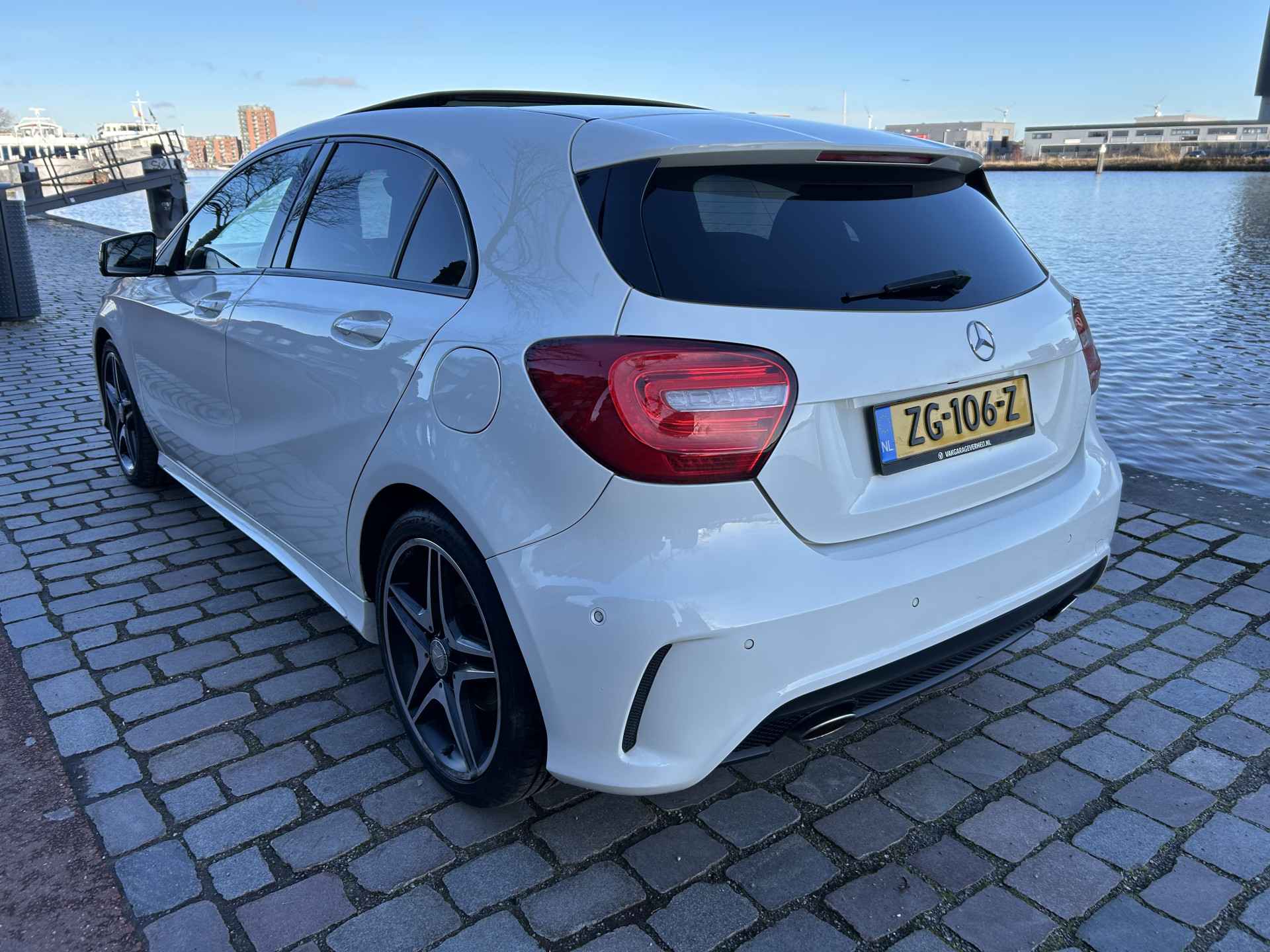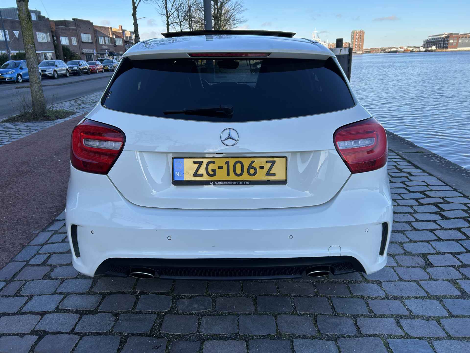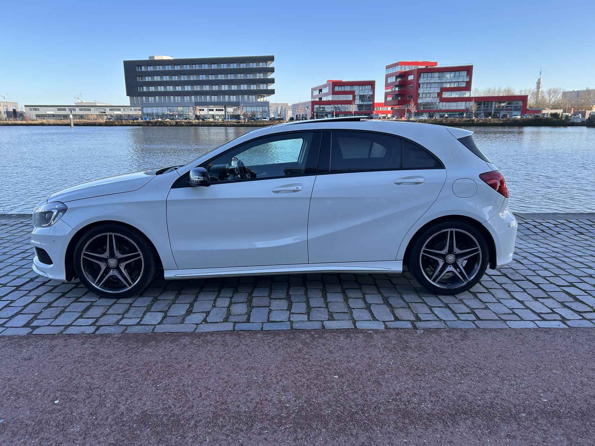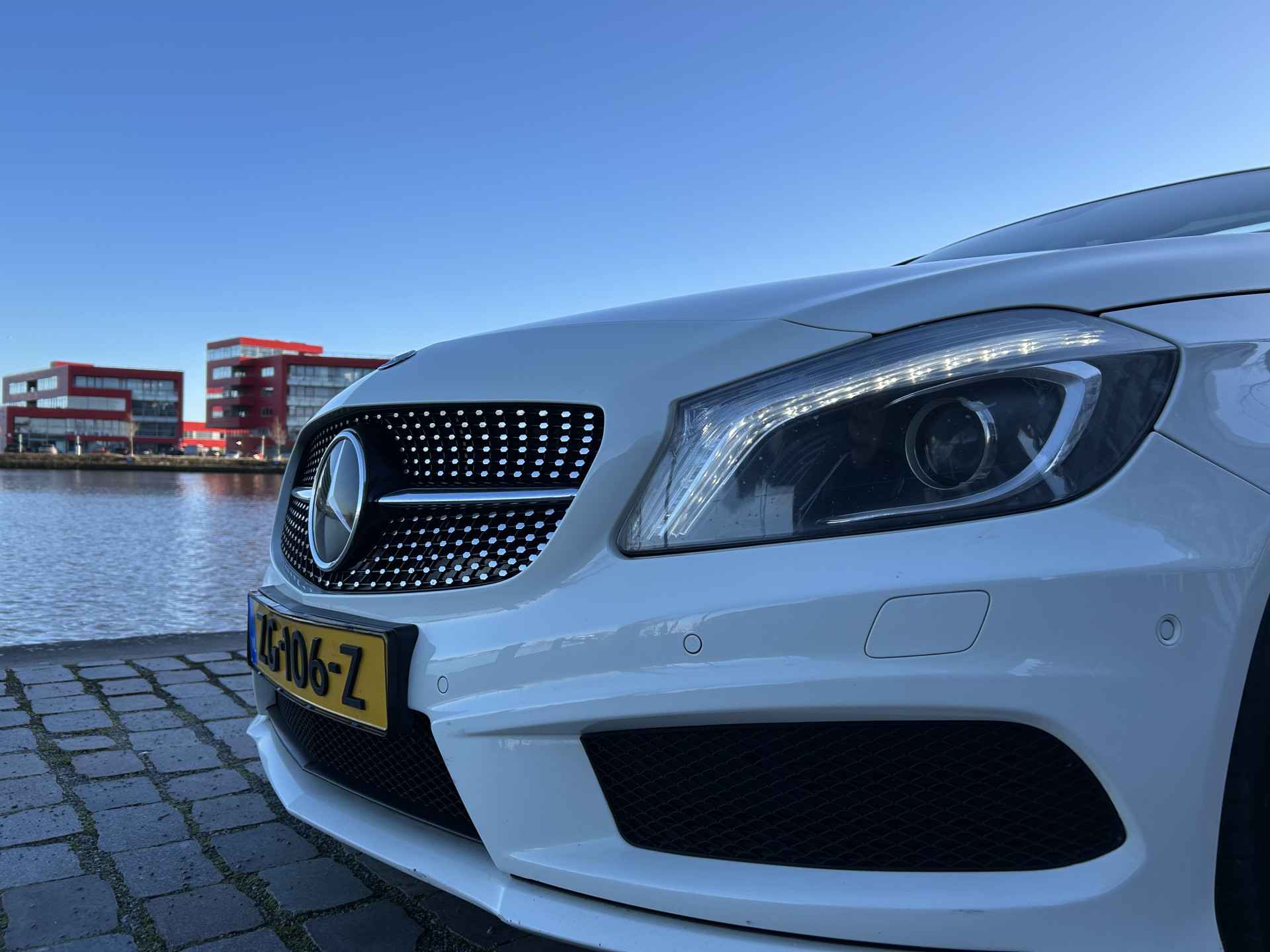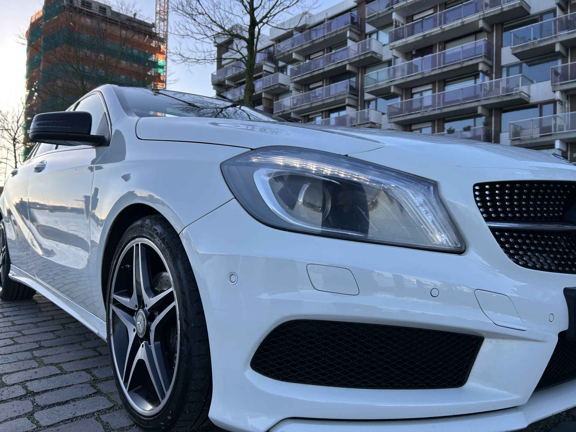 Altijd achter zicht, nooit meer nekkramp! De achteruitrijcamera maakt het supermakkelijk. De luidsprekers van het high performance audiosysteem omringen u met een uitgebalanceerd geluid. Nooit meer te warm of te koud. De automatische airconditioning zorgt altijd voor de temperatuur die u kiest. Het drukke verkeer eist onderweg al uw aandacht op. Daarom is het goed dat deze Mercedes-Benz is voorzien van diverse systemen die u assisteren tijdens de rit. Een automatisch inschakelbare verlichting neemt het waar als het donker wordt of gaat schemeren, en schakelt dan automatisch de verlichting in. Op dezelfde manier "ziet" de regensensor de eerste spatjes regen en schakelt dan de ruitenwissers in, en als het harder gaat regenen zet hij de ruitenwissers ook in een snellere stand. Natuurlijk is deze Mercedes-Benz A-klasse voorzien van cruise control. De Mercedes-Benz is standaard voorzien van: full map navigatiesysteem, schakelpaddles aan het stuur, buitentemperatuurmeter, centrale deurvergrendeling met afstandsbediening, bagage afdekhoes en bekerhouder.