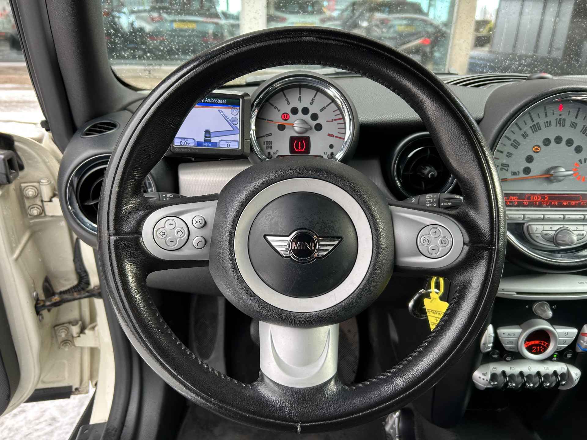 Uw favoriete muziek klinkt beter dan ooit met het ingebouwde high performance audiosysteem. Of het buiten nu warm is of koud, dankzij automatische airconditioning is het binnen altijd behaaglijk. De auto neemt u werk uit handen doordat hij zelf veel in de gaten houdt. Een regensensor en een automatisch inschakelbare verlichting nemen waar wanneer de ruitenwissers en het licht aan moeten. Cruise control verlaagt de brandstofkosten en verhoogt het rijcomfort. De uitrusting van deze MINI is met navigatiesysteem, audiobediening op het stuurwiel, buitentemperatuurmeter, isofix-aansluiting, centrale deurvergrendeling met afstandsbediening en bagage afdekhoes behoorlijk compleet.