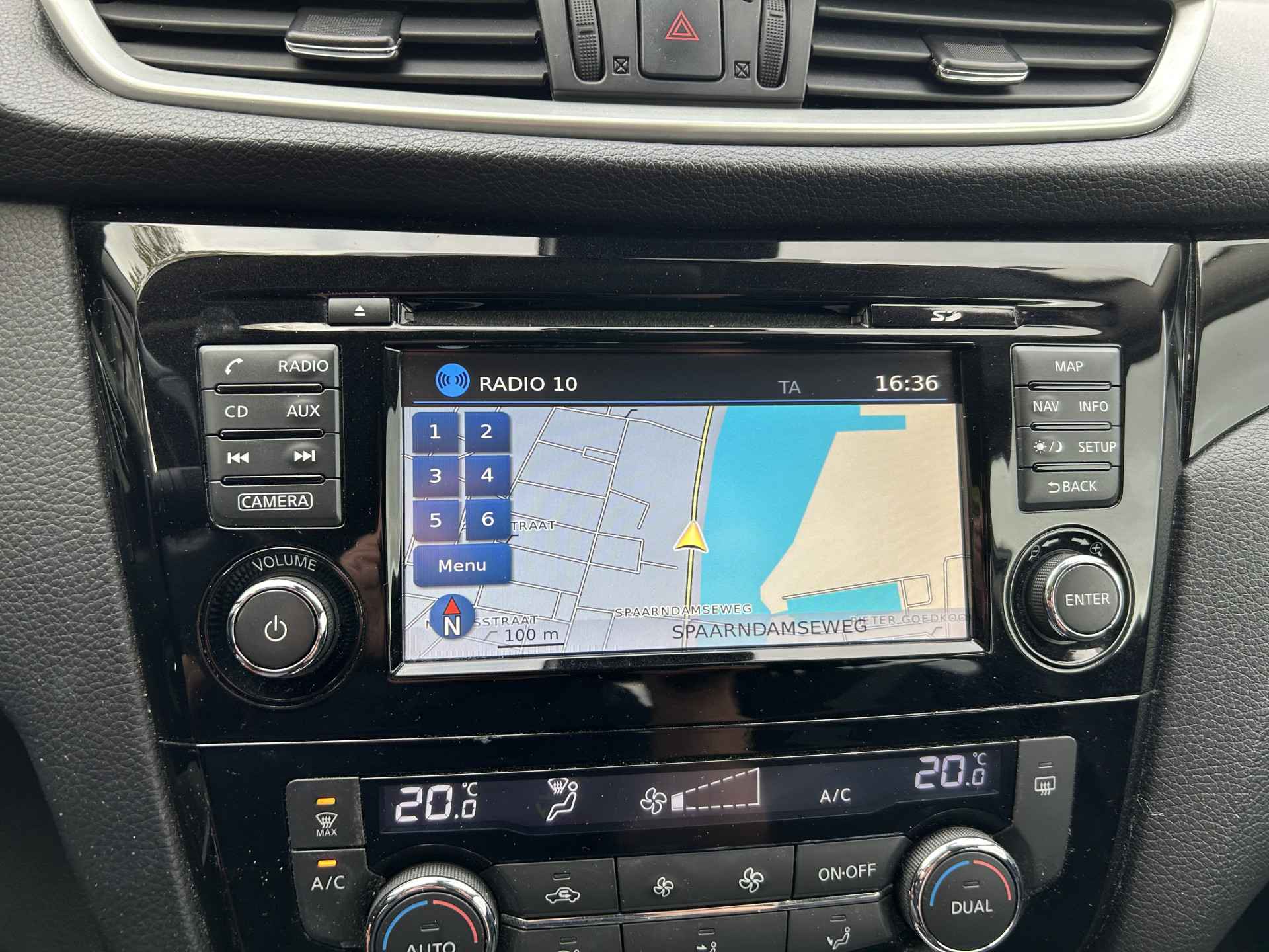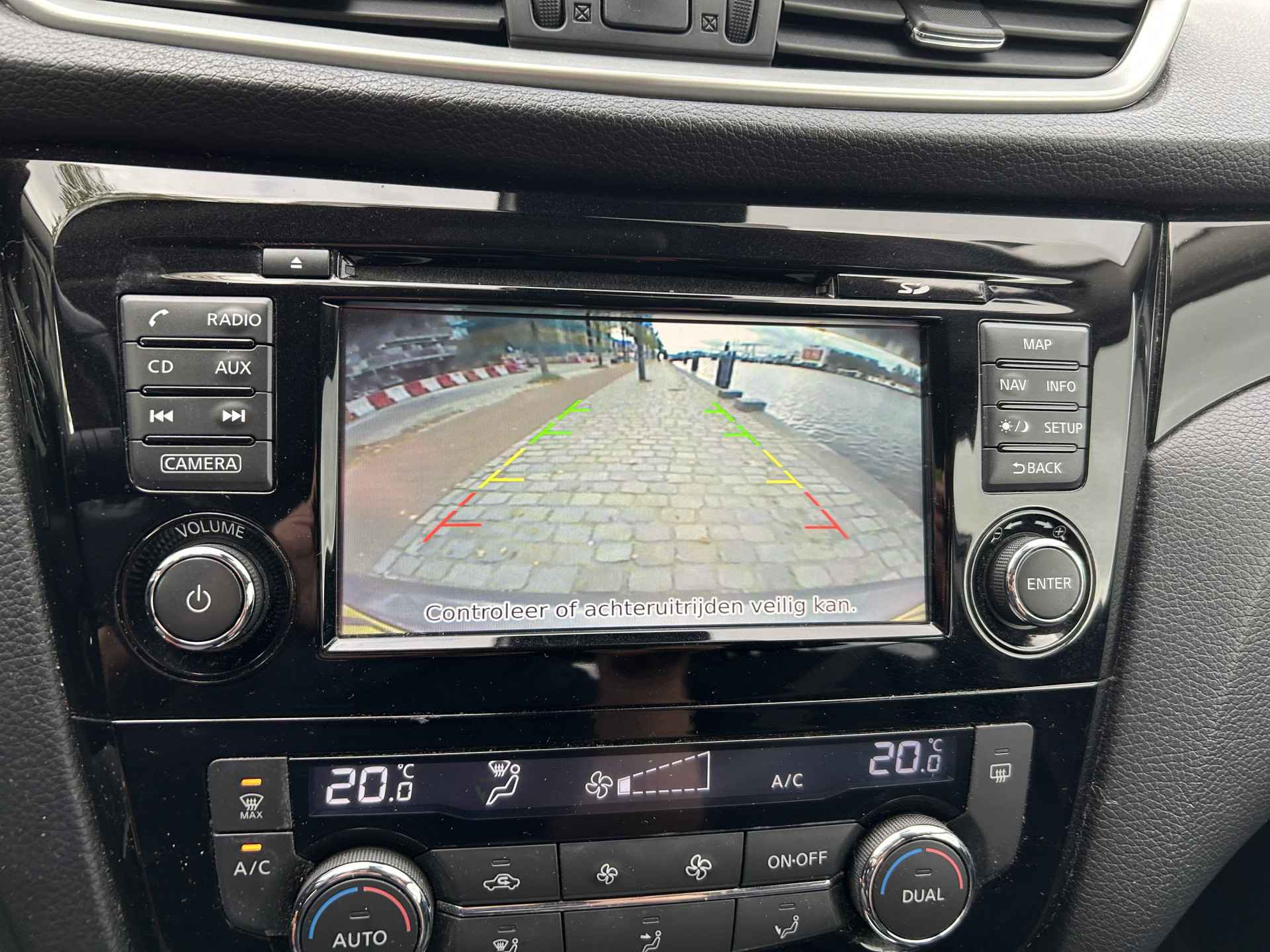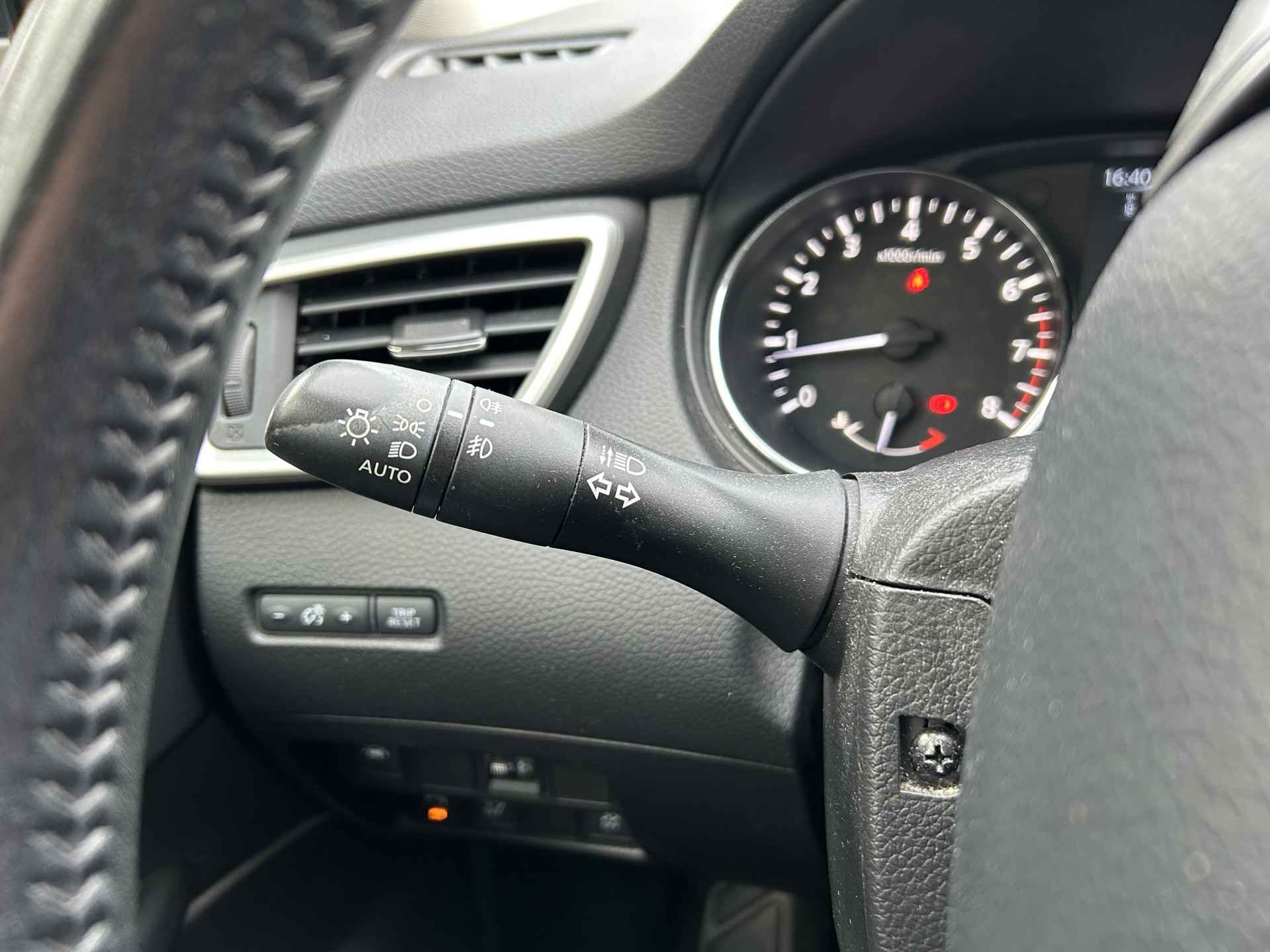 De achteruitrijcamera brengt precies in zicht wat zich achter u bevindt en toont een glashelder beeld op hoge resolutie. Een geluidssignaal waarschuwt hoeveel ruimte u nog heeft. Deze auto kent elke bestemming als z'n broekzak, dankzij het navigatiesysteem. De automatische airconditioning zorgt voor een behaaglijk klimaat in de auto. Wisselen van radiofrequentie of veranderen van zender: de audiobediening op het stuur brengt alles onder handbereik. Met de DAB-ontvanger heeft u keuze uit talloze digitale radiozenders met de allerhoogste geluidskwaliteit. Deze Nissan is voorzien van regensensor, cruise control, keyless entry, buitentemperatuurmeter, automatisch dimmende binnenspiegel en centrale deurvergrendeling met afstandsbediening.