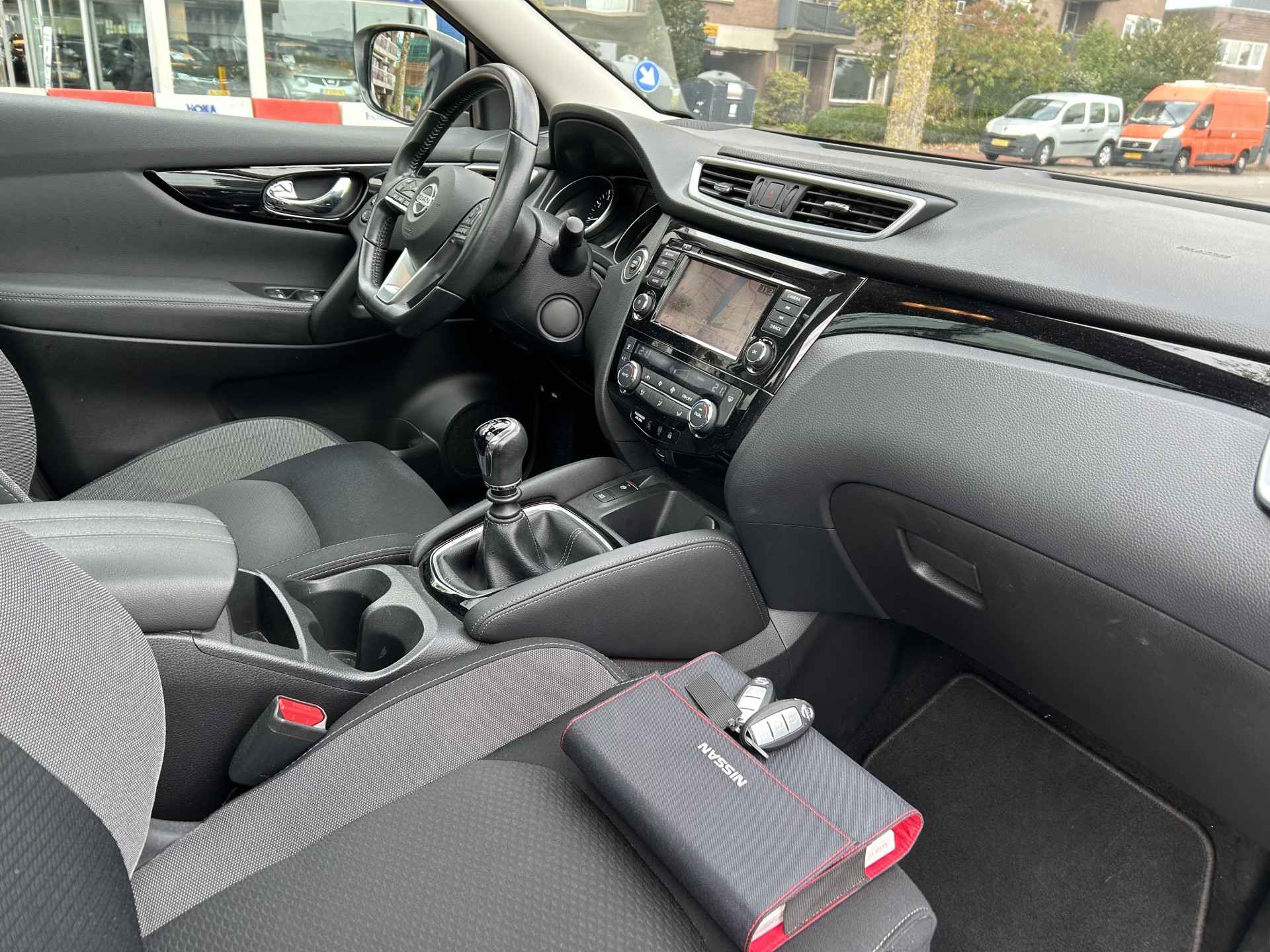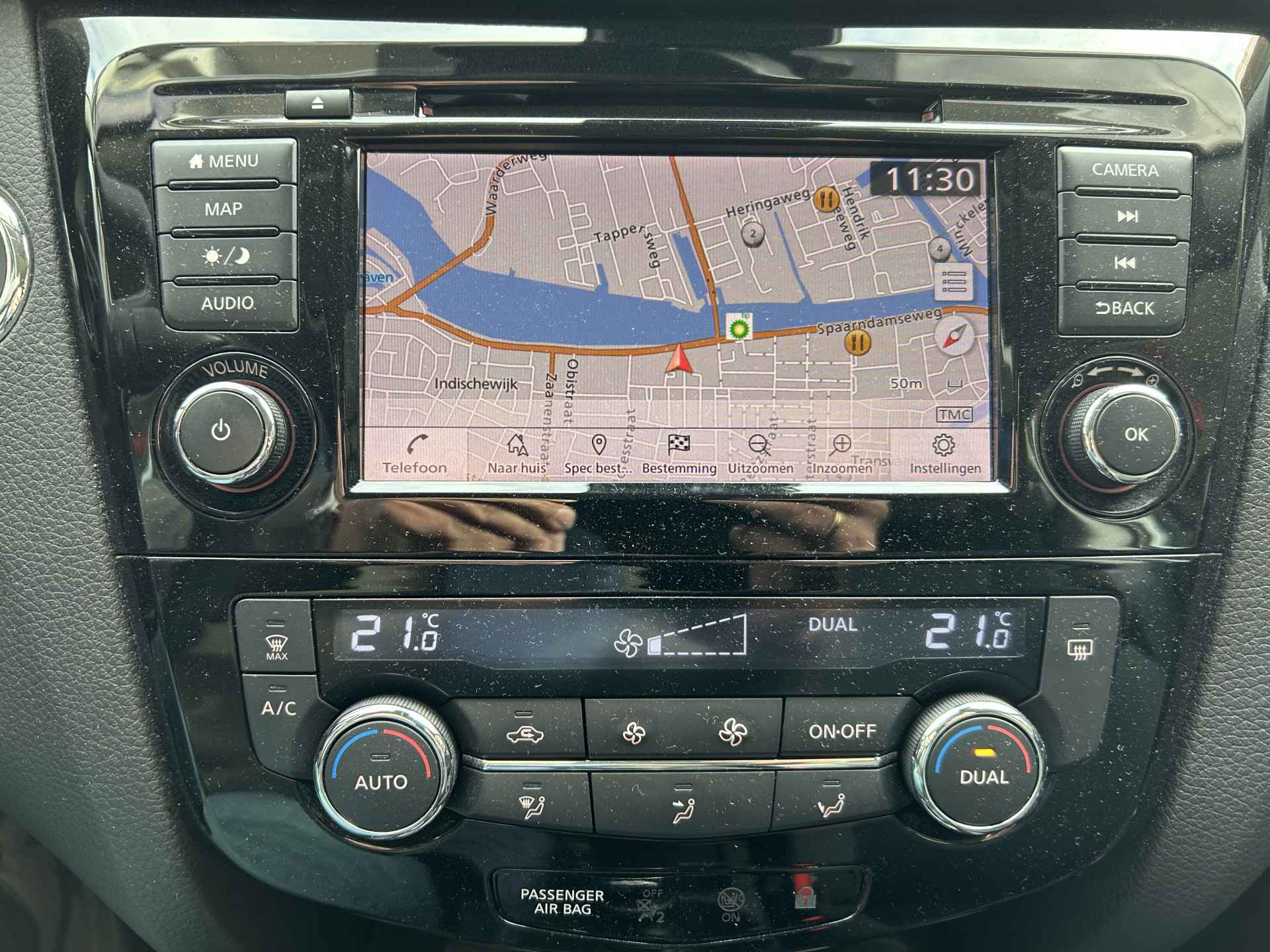 Het gebruik van de 360 graden camera op deze auto helpt u bij het navigeren door lastige rijbanen en het drukke stadsverkeer. Het audio-installatiesysteem met DAB-ontvangst en het full map navigatiesysteem bedient u veilig met knoppen op het stuurwiel of met gesproken commando's. In een auto als deze kunt u niet zonder automatische airconditioning, zodat de temperatuur altijd goed is. Parkeersensoren ondersteunen u tijdens het in- en uitparkeren. De elektronische systemen in deze Nissan helpen u actief om comfortabeler te rijden. Een automatisch inschakelbare verlichting en een regensensor houden de omstandigheden onderweg in de gaten. Ook WIFI-hotspot, cruise control, keyless entry, buitentemperatuurmeter, automatisch dimmende binnenspiegel en isofix-aansluiting horen tot de voorzieningen op deze auto.