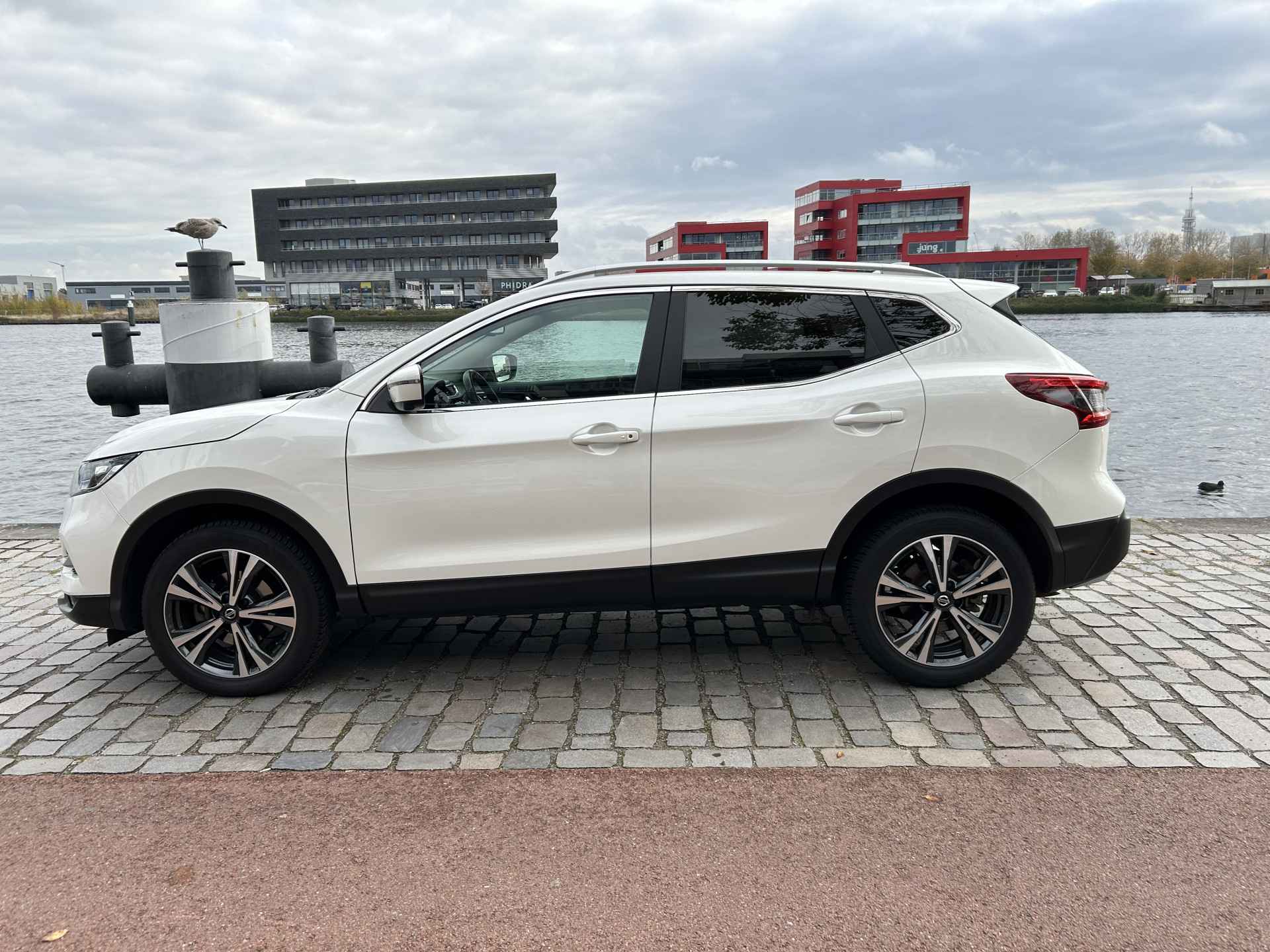 Vooruitstrevend, technisch helemaal voorop en altijd een plezier om te rijden. Dat is Nissan. Innovation that excites. Een robuuste viercilinder benzinemotor is verantwoordelijk voor de aandrijving van deze SUV. Wat een heerlijk ruim gevoel en zoveel licht geeft dat glazen panoramadak! Met de krachtige xenonverlichting heeft u optimaal zicht in het donker. Verder is de Nissan uitgerust met: 18 inch lichtmetalen velgen, LED koplampen, in hoogte verstelbare passagiersstoel, donker getint glas achter, in delen neerklapbare achterbank en LED-achterlichten.