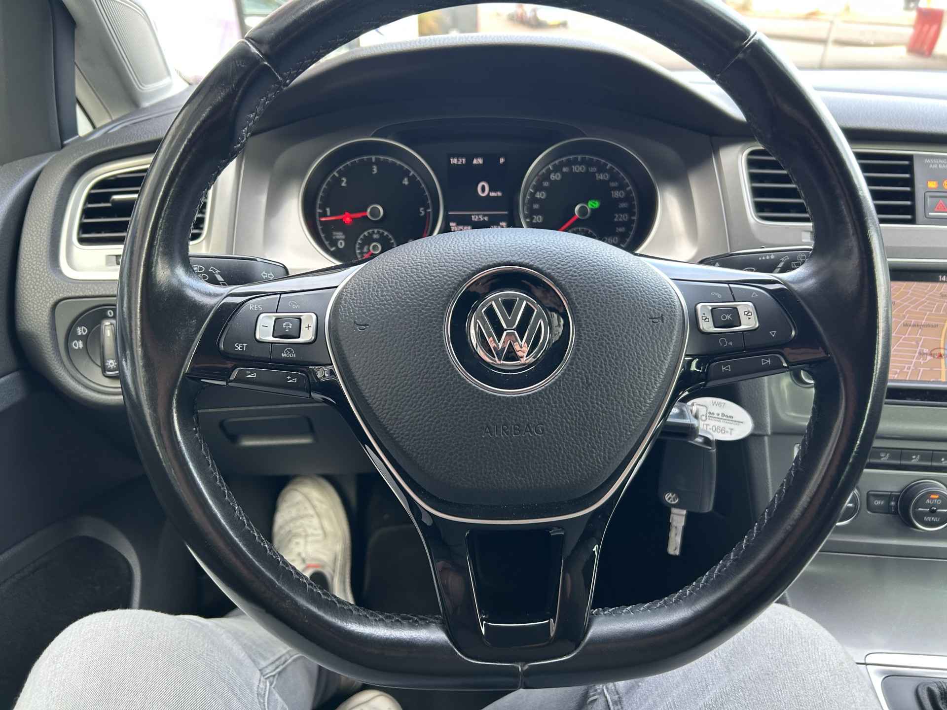 Deze Volkswagen Golf staat garant voor vele veilige en comfortabele kilometers. Het zijn de degelijkheid van de constructie en de doordachtheid van het ontwerp die ervoor zorgen dat een Volkswagen jarenlang begeerlijk blijft. Zoals bijvoorbeeld deze dealeronderhouden Golf. Als u een laag brandstofverbruik en goede prestaties belangrijk vindt, dan bent u uitstekend bediend met de viercilinder dieselmotor. 's Winters op pad gaan kan een behoorlijke uitdaging zijn. Daarom is deze Volkswagen Golf voorzien van weldadige verwarmbare voorstoelen. Stevig ondersteund door de sportstoelen blijft u bij elke beweging op uw plek. Bij de zeer complete uitrusting van deze auto behoren ook 18 inch lichtmetalen velgen, adaptieve mistlampen, dakspoiler, getint glas, in delen neerklapbare achterbank en verstelbare lendensteunen.